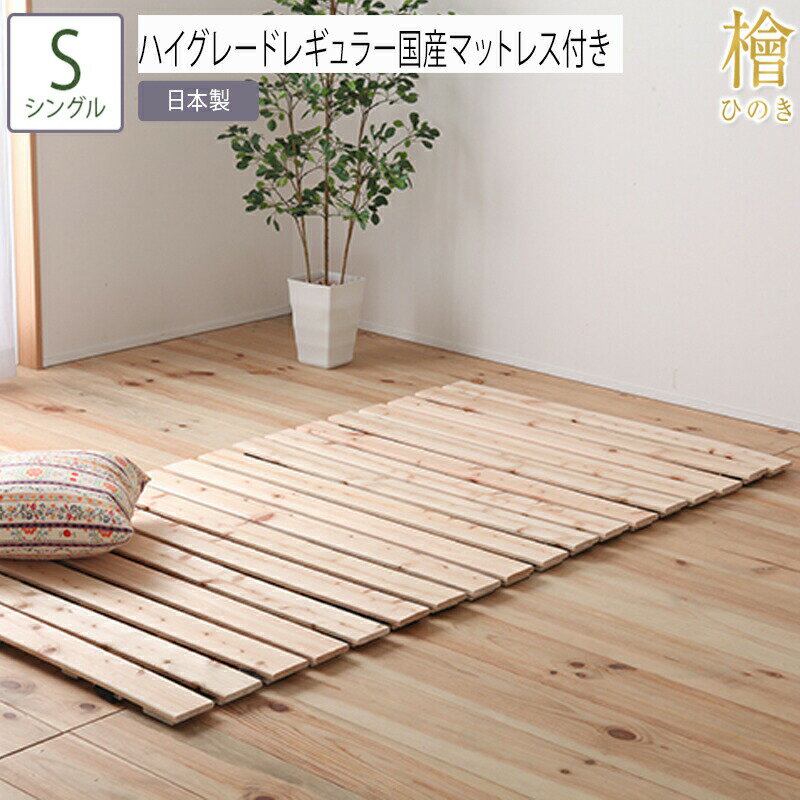 送料無料 ベッド シングル S ハイグレードレギュラー国産マットレス付き ロール檜 ロールすのこ ひのきベッド すのこベッド コンパクト ロール檜 ローベッド ベッドフレーム シンプル おしゃれ コンパクト収納
