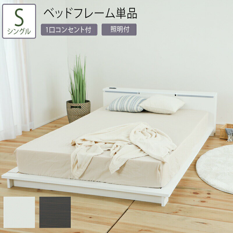 日本製 ベッド シングル Sサイズ ベッドフレーム単品 照明付きフロアベッド コンセント付 ブックシェルフ フロアベット ローベッド ベッドフレームのみ シンプル おしゃれ 国産 一人暮らし ライト付き ベット すのこベッド 通気性 ひとり暮らし 北欧 モダン 木製 コンパクト